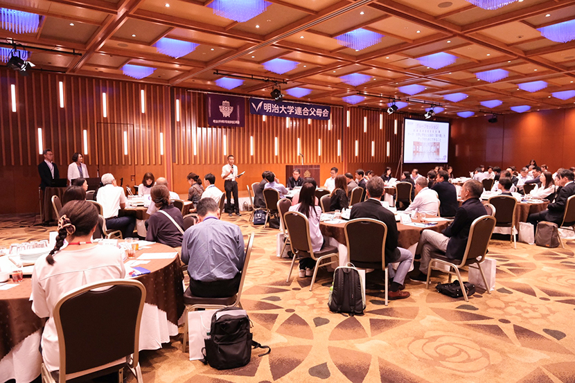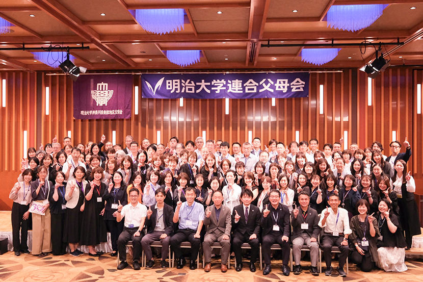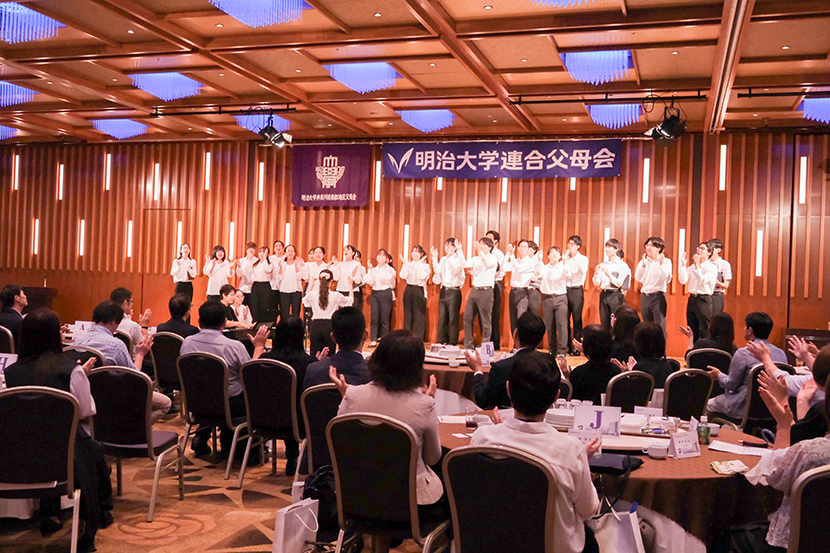「明治大学混声合唱団」によるパフォーマンスでは「ライオンキング」や「トイ・ストーリー」からの楽曲が披露されました。最後に参加者全員での校歌斉唱で会場の一体感は最高潮に。懇親会では、ホスト地区である神奈川県東部地区父母会による「港のヨーコ・ヨコハマ・ヨコスカ」の替え歌パフォーマンスが披露されるなど、笑顔と絆が深まるひとときとなりました。