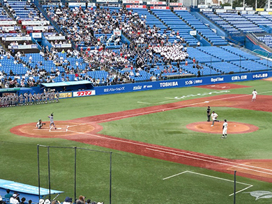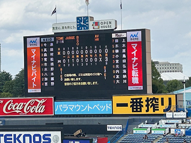 試合は、先発・大室投手をはじめ、リリーフ陣も無失点でつないだ見事な投手リレーで、慶應打線を4安打に抑えた試合運びに3回の榊原選手のタイムリーは流れを確実に追加点へつなげ、田上選手の5回のホームランは、1塁側応援席では歓喜の声が上がり、この試合を決定づけた一発でした。野球の勝敗だけでなく、学生さんたちの一生懸命な姿、そして応援を通じた一体感に心動かされる一日となりました。ご参加いただいた皆さま、そしてご準備いただいた皆様に心より感謝申し上げます。