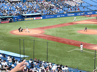 チャンスの場面では「神風」という応援歌が響き渡り、観客全員が紫紺のタオルを掲げて振るその姿は圧巻でした。私たちもタオルを振りながら、応援歌に合わせて声を出し、ひとつになって応援する楽しさを感じました。