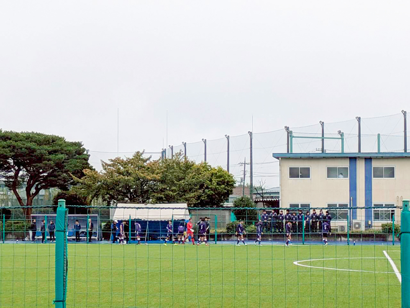 いよいよキックオフです。雨の中、カッパを着用しての応援となりましたが、神奈川県西部地区父母会は、キックオフのホイッスルを合図に、チームに熱い声援を送りました。選手たちは水しぶきを上げながらプレーしていました。雨によるグラウンドコンディションの変化が、パスやボールの動きに影響を与える中、選手たちはそれに適応しようとします。膠着状態のまま試合は進み、明治大学にも何度かチャンスが訪れますが、なかなか得点には結びつきません。危ない場面も何度かありましたが、0-0で前半を折り返しました。 前半終了後、絶対に勝って終わろうと円陣を組んで後半に臨みます。