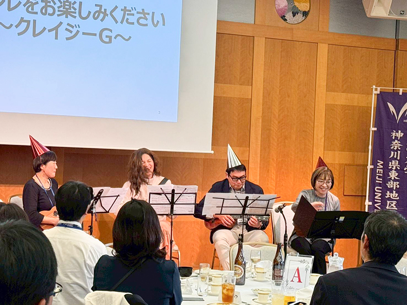続いて、西部地区1年生および有志の皆さんによる、神奈川県をテーマとしたクイズと、『クレージーG』『涙そうそう』のウクレレ演奏が行われました。演奏には江の島カレンさん(吉野会長)もご参加くださり、とても素敵な演奏に会場全体が一つになり、心和む時間となりました。