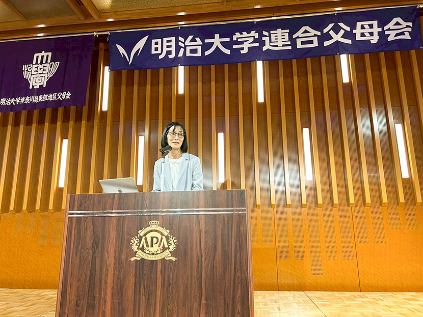 はじめに、明治大学副学長の浜本牧子先生から、大学の近況報告をいただきました。