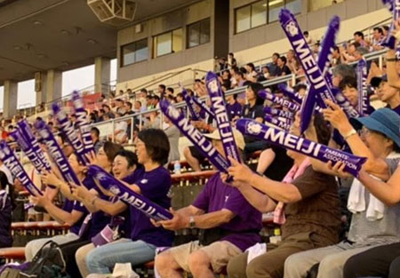 一般会員の方に話しかけると、「明大生の孫がこの応援会に誘ってくれ、今日着ている明治のTシャツはその孫が買ってくれました。」と教えてくださる男性はご家族で参加、「最近、岐阜県から埼玉に引っ越してきました。」とおっしゃる女性はご夫婦で参加、「子どもが明治のラクロス部に入っているので、そっちも応援お願いします。」と仕事帰りにお友達と参加された方など、同じ明大生を持つ親としてすぐに打ち解けました。