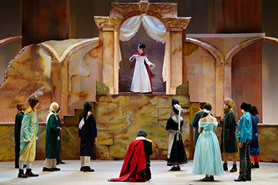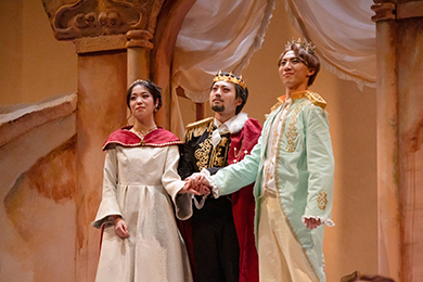 写真提供:明治大学シェイクスピアプロジェクト冬物語は、シチリアとボヘミアを舞台に、嫉妬に囚われたシチリア王レオンティーズが妻も娘も失ったはずが、時を経て真実が明らかになり、失われた家族が奇跡的に再会し、愛と赦しによって再生する物語です。