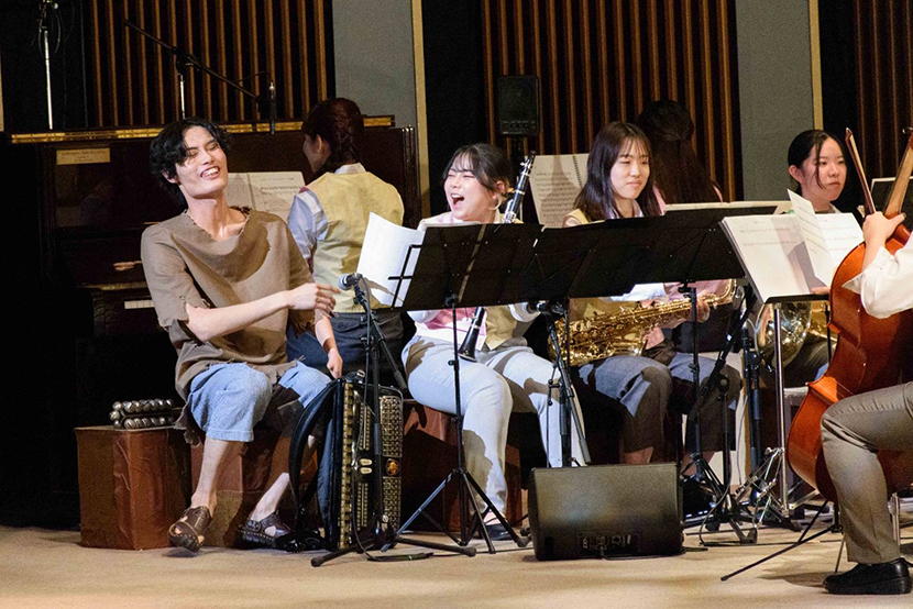 ここで、ちょっとした裏話をご紹介します。劇中で、オートリカスが「ストップ、それは次の曲」と言って楽器隊と絡むシーンがあったことをご記憶されていると思います。これは稽古中、偶然に曲を間違えたところを演出に使えるのではないか?ということで取り入れられたと伺いました。今回の公演は楽器隊が客席に近いことあり、オートリカスのキャラクターと相まって面白いシーンだったと思います。