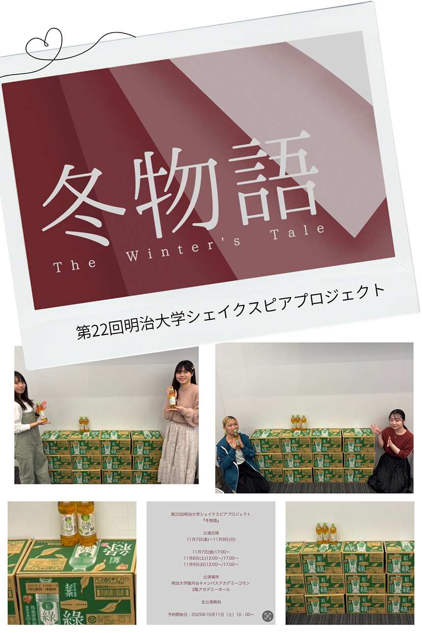 第22回明治大学シェイクスピアプロジェクト「冬物語」が11月7日から9日までの3日間で5公演が行われました。