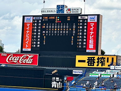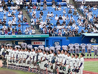 5回裏、田上選手が2号ソロアーチ(ホームラン)をライトスタンドにかけて3点目を追加すると、応援席は周りの人と肩を組み、ありったけの声で神宮球場に校歌を響かせ、盛り上がりは最高潮を迎えます。