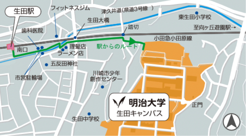 ■生田キャンパス地図:小田急線生田駅下車 南口から徒歩10分