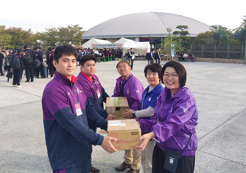 試合前には激励の想いを込めて差し入れをお渡ししました。
