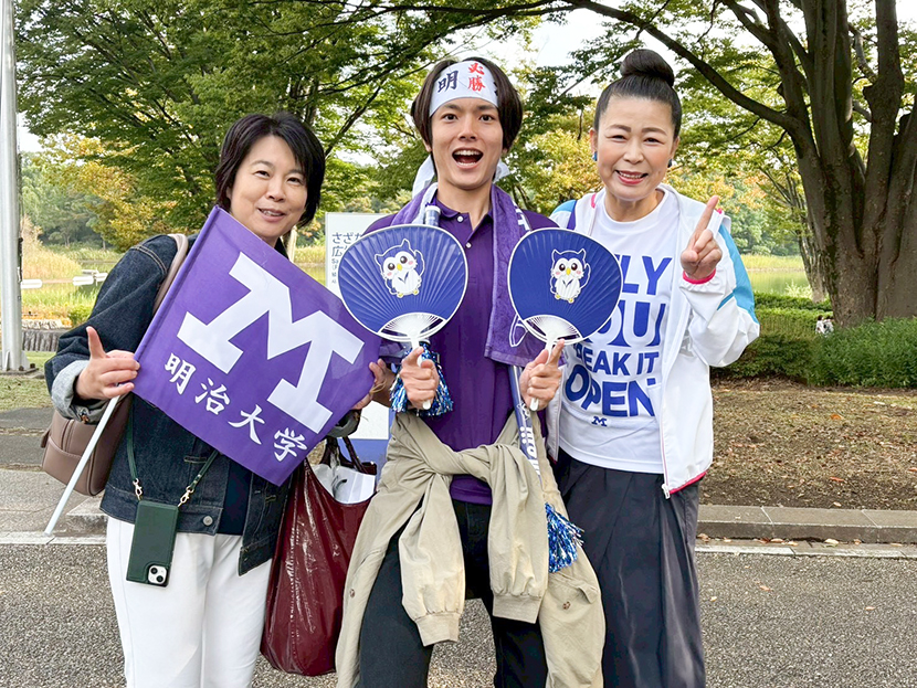 「明治!」「頑張れ!」と大きな声援と拍手を送りました。