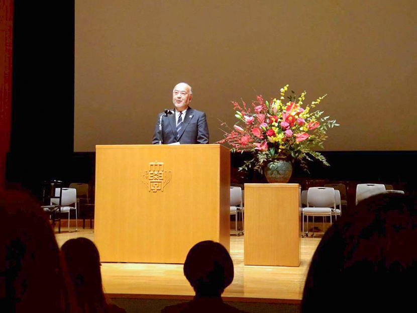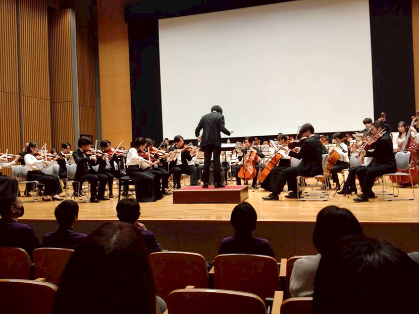 開会式前、紫紺ポロシャツを着用し駿河台キャンパス・アカデミーコモンにて開会式はアカデミーホールでおこなわれ、上野学長のご挨拶に引き続き明治大学交響楽団の開会記念コンサートで華やかに幕開けしました。