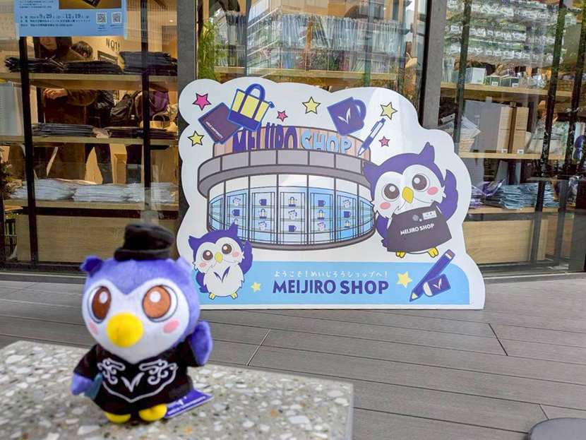 「めいじろうショップ」では、めいじろうグッズや明治大学のロゴ入りグッズが飛ぶように売れていました。