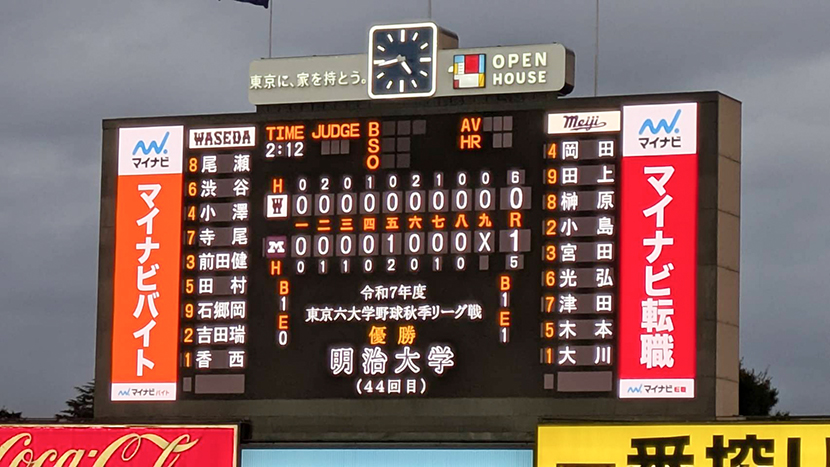 優勝インタビューでは、戸塚監督が「人間力野球」に力を入れてきたことに言及し、木本主将は「一戦必勝」を掲げ、共に最後の立教大学に勝ち、全勝優勝を目指していることを話していました。ここまで来たら、全勝優勝して欲しいですね。