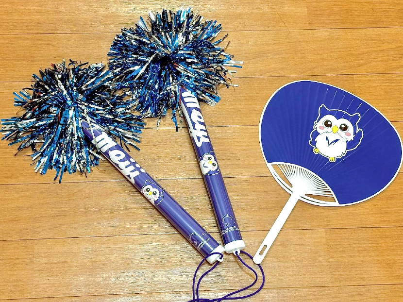 最後に、大学から頂いた応援グッズのうちわやポンポンスティックが配布され、全員で集合写真を