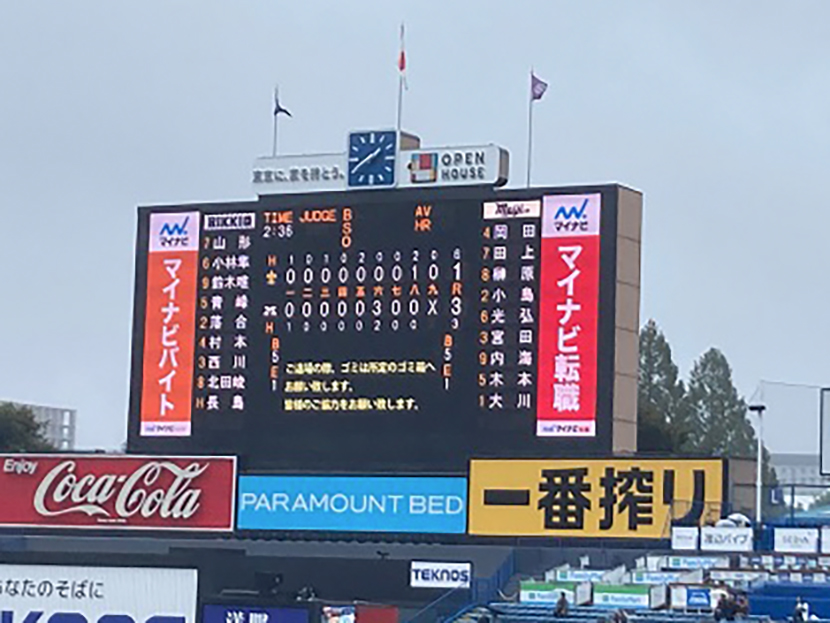 当日は、少し寒く小雨降る悪コンディションのなか、明大・毛利投手、立大・森本投手の両先発が要所を締めるピッチングで6回表まで0対0の投手戦。