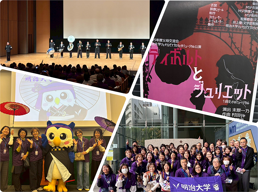 2025年11月23日、学生たちが通う駿河台キャンパスにて「第21回 明治大学父母交流会」が開催されました。サークルによる演奏やパフォーマンスを鑑賞しながら、父母の皆さま同士で交流を深めていただくイベントです。