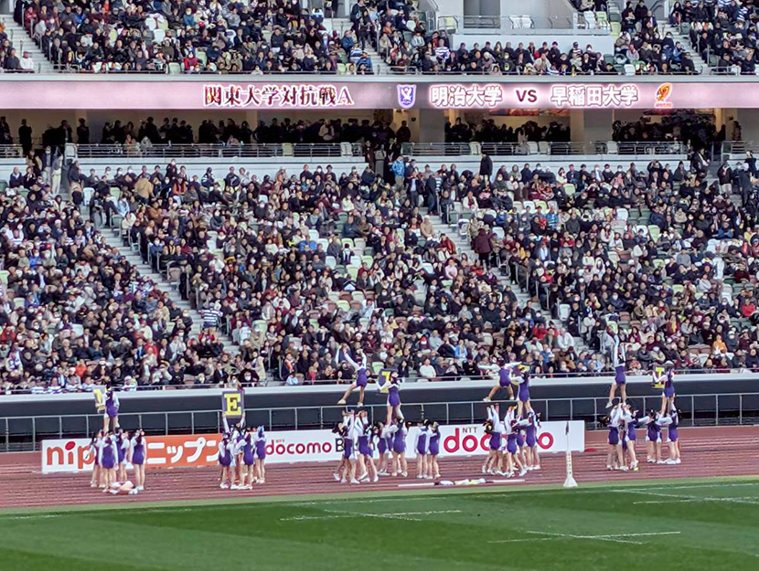 ハーフタイムには両校のチアリーダーが華やかに舞い、アクロバティックなパフォーマンスが熱気をさらに押しあげました。