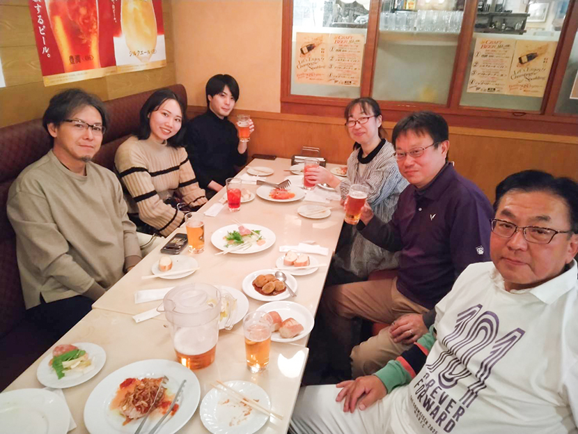 試合後は、試合の応援に参加できなかったメンバーも加わり、山口県父母会での食事会を開催しました。総合数理学部の小松孝徳教授が今回も参加していただき、学生生活や学びに関するアドバイス、大学の現状など、貴重なお話しも伺うことができました。