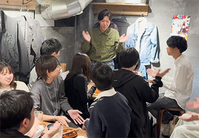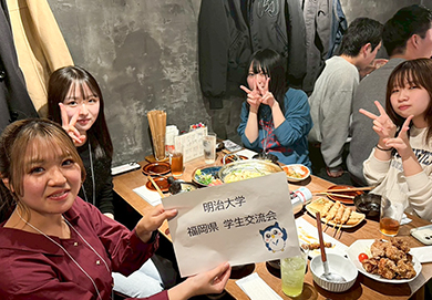 学生同士は学年・学部が異なり初対面も多くありましたが、すぐに会話が弾み、大学生活やサークル、地元福岡の話題などで盛り上がっていました。