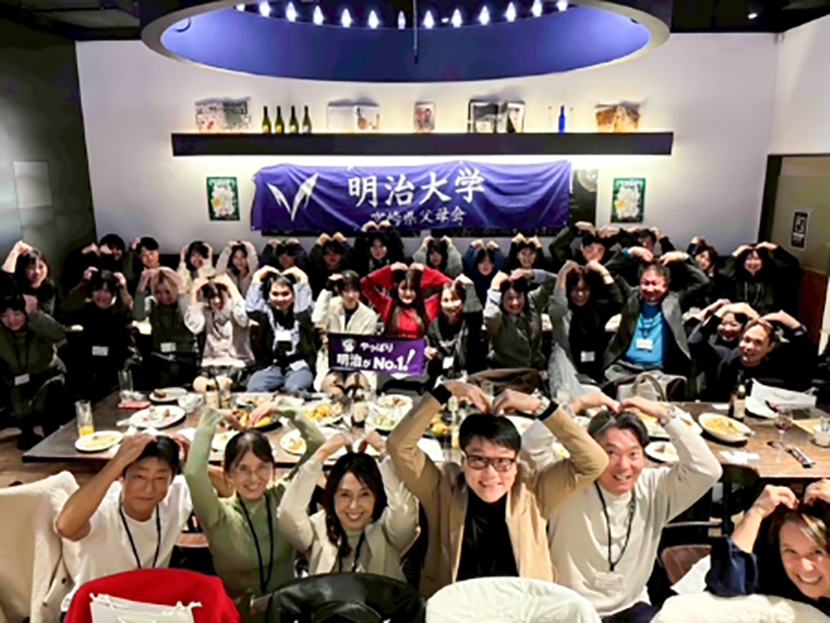 明治大学宮崎県父母会は、「出会い、語らい、つながる」をモットーに、これからも学生をサポートし続け、楽しく活動していきます。
