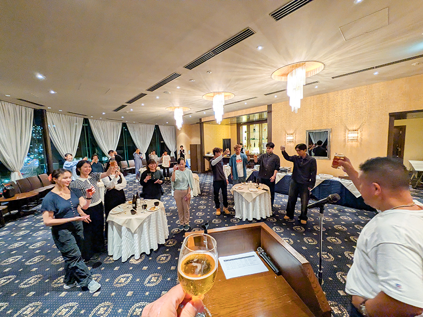 立食パーティーで、スタートから打ちとけてにぎやかに食事と会話を楽しみました。