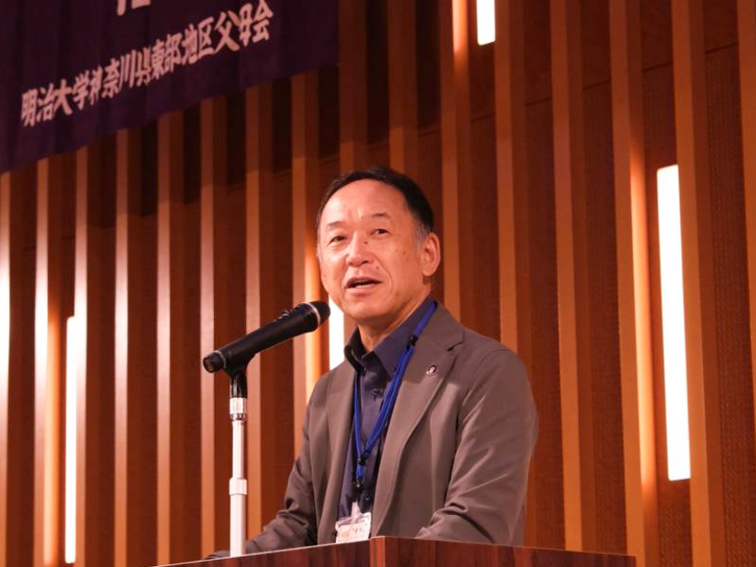 さらに150周年記念事業として、①山の上ホテル継承事業、②駿河台キャンパス総合施設整備計画「SURUGADAI 6.0」、③「紫紺の襷プロジェクト ~Mの輝きを再び~」と3つのプロジェクトが紹介され、特に③の紫紺の襷プロジェクトは、2032年1月の箱根駅伝優勝を目指す壮大なプロジェクトとのこと、箱根にかける明治大学の本気の思いが伝わりました。