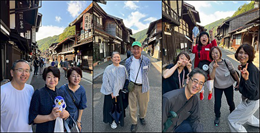 次に訪れたのは、江戸の情緒を色濃く残す中山道の宿場町「奈良井宿」。通りを歩けば、昔ながらの木造建築が立ち並び、木の香りと秋の風が心地よく感じられます。参加者の皆さんはカメラを片手に、漆器や手作りの工芸品を眺めたり、名物の五平餅を味わったりと、それぞれの時間を満喫しました。