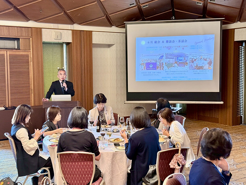 活動報告では、それぞれ創意工夫を凝らした学生の応援や保護者同士の交流について会長より報告がありました。東京の子どもに思いを馳せながらの父母会活動は、地方出身学生の保護者にとっては大変ありがたい機会です。橋本連合父母会副会長より父母会についてお話がありましたが、このような機会をいただけたことに感謝すると共に、子ども達のために私たち保護者が手を取り合ってできることは、無限大だと確信しました。元父母の会の片桐監事からは、元父母の会について、子どもが卒業すると「父母会ロス」に陥るため受け入れ先として誕生したことなど、ユーモアたっぷりにお話いただきました。