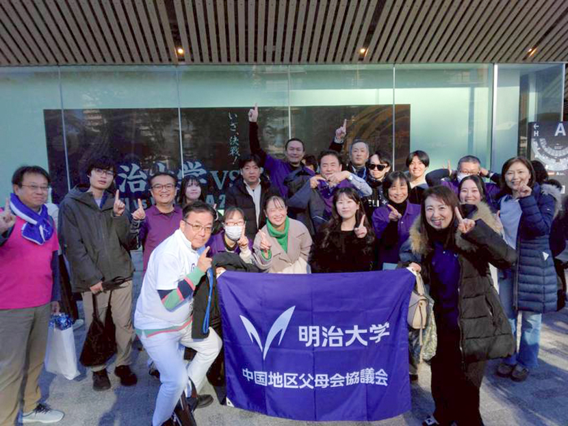 今回の合同応援は、中国地区協議会にとって大きな一歩となりました。参加された皆さまのおかげで、温かく一体感のある応援を行うことができました。今後も、父母と学生が一緒になって明治大学を応援できる機会づくりを積極的に進めてまいります。