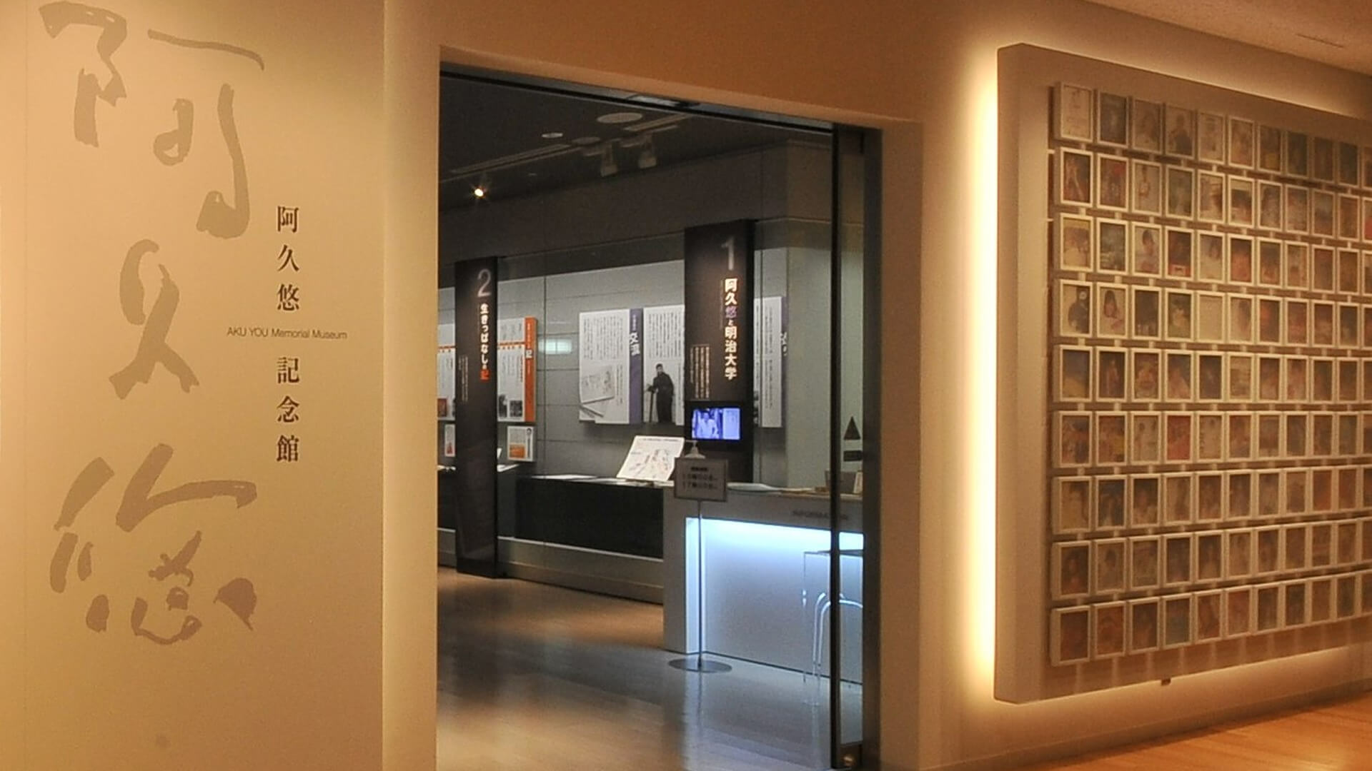日本を代表する作詞家・作家の阿久悠(1959年文卒)は、多数の歌謡曲の作詞を手がけました。阿久悠記念館では、自筆原稿、レコード、書籍、レコード大賞のトロフィーや自宅書斎の再現などを展示しています。