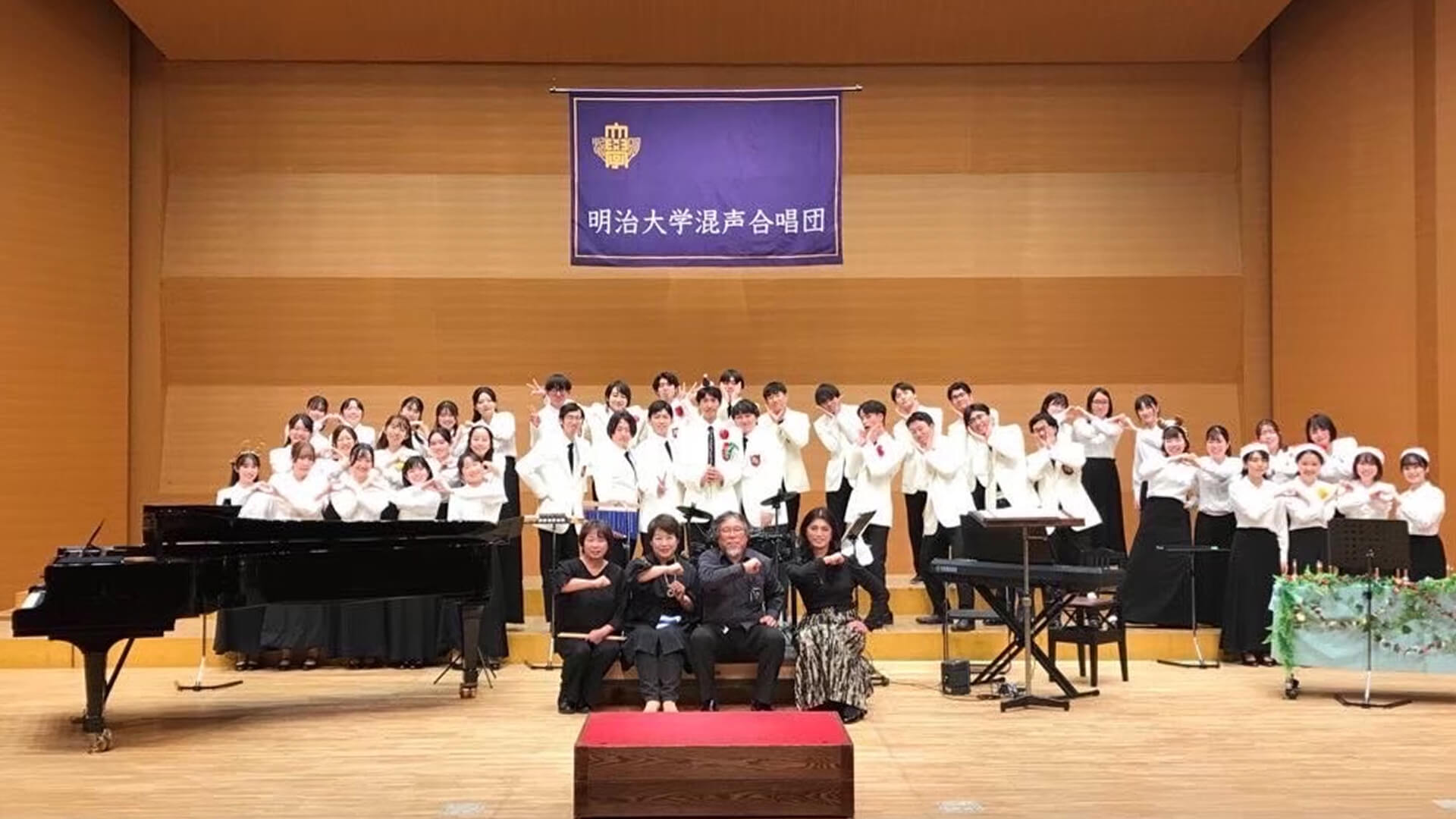 〈明グリ〉の愛称で親しまれる明治大学グリークラブは、1960(昭和45)年の独立から今年で65年を迎える明治大学唯一の公認男声合唱団であります。団員数は30余名。12月13日に開催される第74回定期演奏会に向けて活動を行っております。