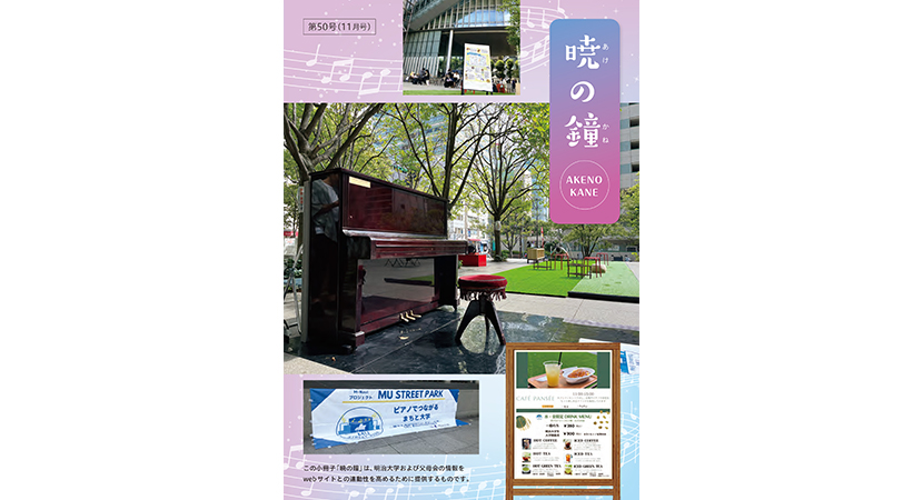 この小冊子「暁の鐘」は、学部学生ご父母のみなさまを対象として、明治大学及び父母会の情報をwebサイトとの連動性を高め提供するものです。