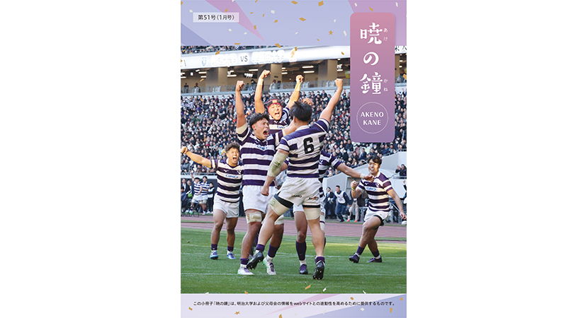 この小冊子「暁の鐘」は、学部学生ご父母のみなさまを対象として、明治大学及び父母会の情報をwebサイトとの連動性を高め提供するものです。