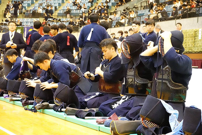 大会は男子学生の剣道大会で、全国の大学から参加64校により競われました。1チーム7名でメンバーが構成され、1番手から順番に先鋒、次鋒、五将、中堅、三将、副将、大将と、5人制の先鋒、次鋒、中堅、副将、大将の編成と異なります。