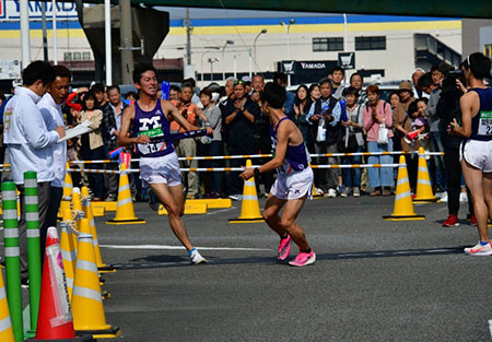 2019年11月3日(日)、伊勢路は晴天。8時5分、伊勢神宮のゴールに向かって熱田神宮を各校の選手たちが一斉にスタートしました。