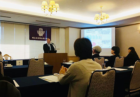 今年は明治大学より就職キャリア支援部長の舟戸一治先生をお迎えし、近年の雇用環境の変化等、就職に関する最新の情報を講演して頂きました。